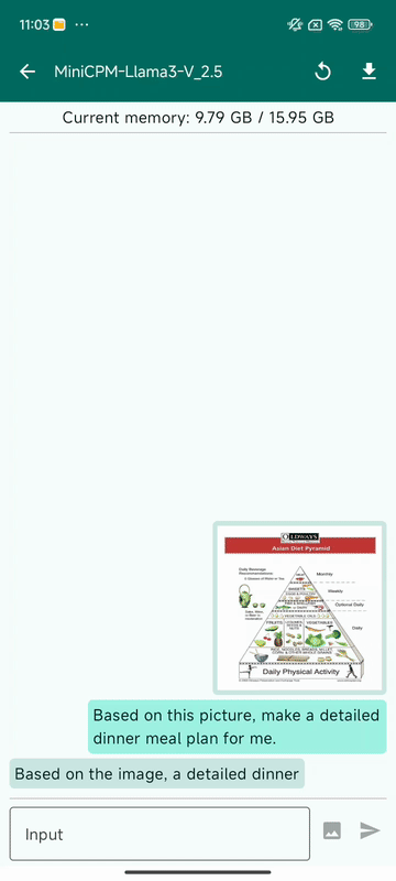 We deploy MiniCPM-Llama3-V 2.5 on end devices. The demo video is the raw screen recording on a Xiaomi 14 Pro without edition.
