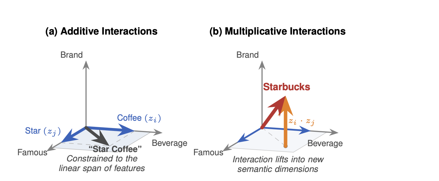 Why: Standard SAEs assume features combine additively through linear reconstruction, which conflates compositional concepts with co-occurrence—they can't distinguish whether "Starbucks" emerges from composing "star" + "coffee" features or merely their frequent overlap, forcing monolithic features for compound concepts.