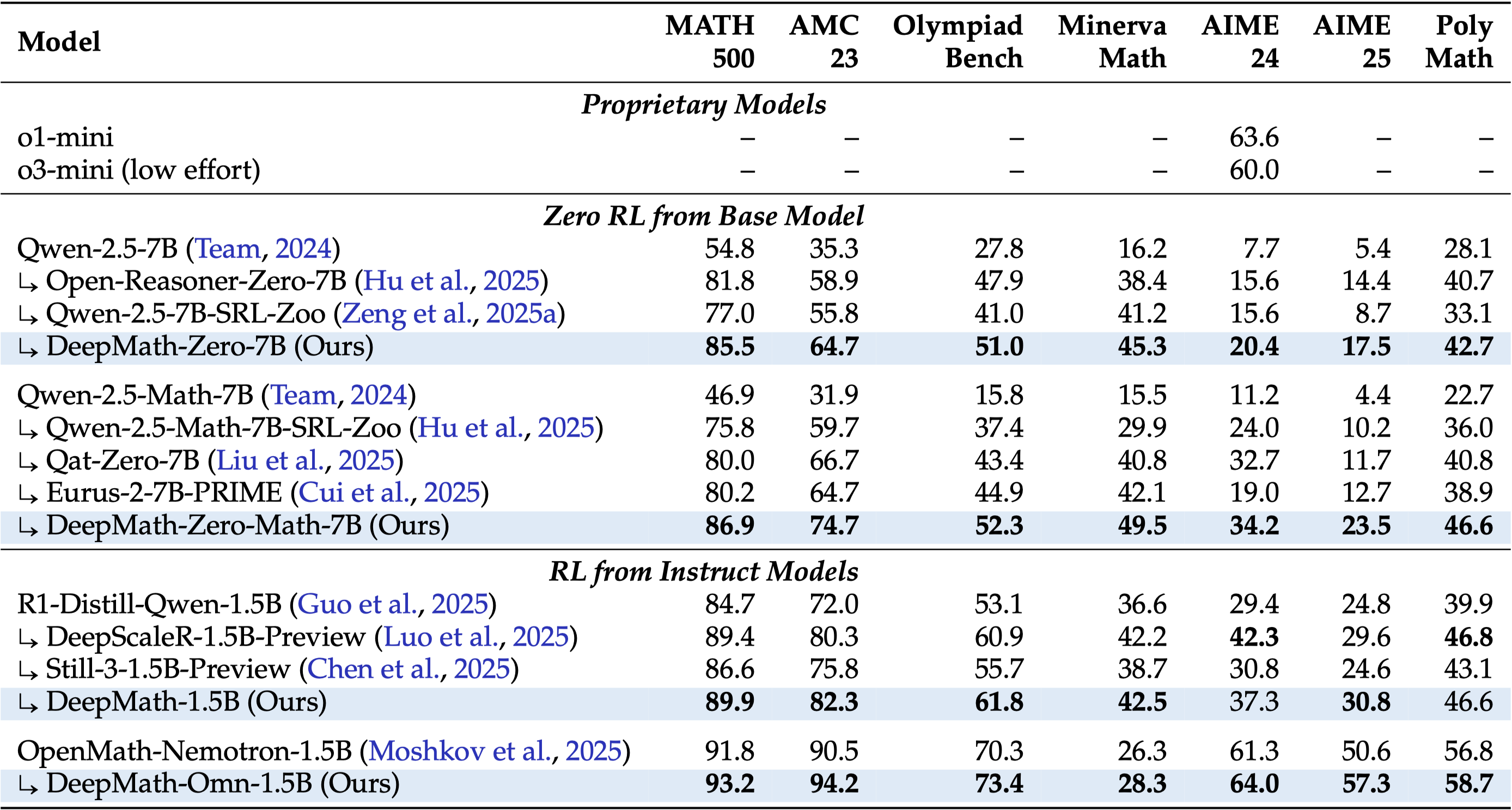 DeepMath serise models achieve many SOTA results on challenging math benchmarks: